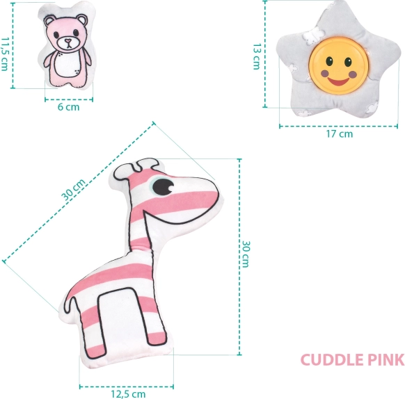 Det bløde legetæppe Comfort Cuddle Pink er den ideelle første legeting til din baby. Det tilbyder interaktive plysdyr med raslelyde for sjov træning af hånd-øje-koordination og udvikling af greb. Takket være de aftagelige legetøj kan det nemt bruges på bilstol eller barnevogn. Det minimalistiske look og det antiallergene materiale sikrer komfort og stil i enhver indretning.