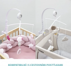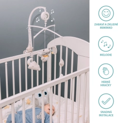 Det musikalske sengeuro er mere end blot en smuk dekoration til børneværelset. Det giver babyer fra fødslen en rolig søvn takket være flere melodier og plyslegetøj, som understøtter høre-, motoriske og visuelle sanser. De søde dyr i blide farver skaber en behagelig atmosfære, der beroliger barnet og ledsager det ind i drømmeland.