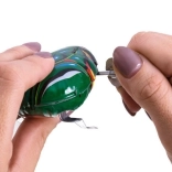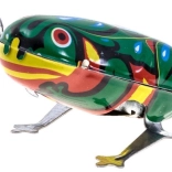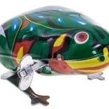 Dette søde legetøjsfrø er lavet af metal i en smuk grøn farve og drives af en fjederdrevet mekanisme, der spændes med en nøgle. Frøen bringer smil til alle generationers ansigter. Med dens små dimensioner passer den nemt i et barns hånd og er perfekt til sjove øjeblikke, når den f.eks. er gemt væk i en taske. Sørg for at have den som en lykkebringer!