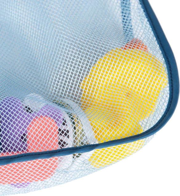 En organizer, der sørger for, at badeværelset altid er ryddeligt. Med to sugekopper kan organiseren fastgøres på væggen på badeværelset. Det netede rum er åndbart og lader legetøjet tørre til næste bad. Samlet størrelse 32×38 cm.