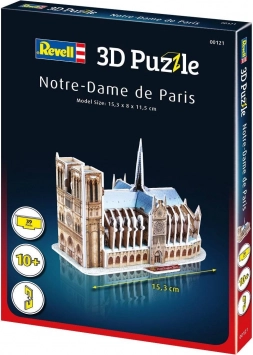 Revell 3D-puslespil Notre-Dame de Paris er det ideelle valg for alle, der elsker historie, arkitektur og klog underholdning. Præcist udskårne dele af kvalitetskarton med realistisk tryk gengiver tårne, stræbebuersystem og det slanke spir troværdigt. Den færdige model bliver en stilfuld dekoration og en påmindelse om et af Paris’ mest kendte vartegn.