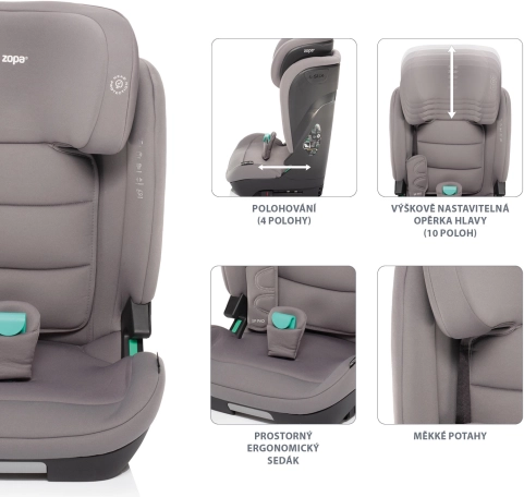 En rummelig autostol med bløde betræk og mulighed for at vippe i 4 ergonomiske positioner sikrer en behagelig tur – også på længere kørsler og under søvn. Indstillingen kan nemt justeres med en lås i den forreste del af autostolen. Nakkestøtten tilbyder op til 10 indstillinger, så autostolen kan vokse med barnet.