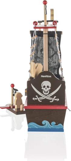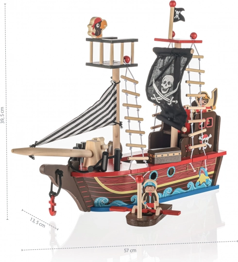 Gå ombord på det træ piratskib, som vil fortrylle ethvert barn med sine smukke detaljer og legesyge design. Det er lavet af ugiftige materialer, sikkert for børn fra 3 år, og fungerer også som en æstetisk detalje i børneværelset.
