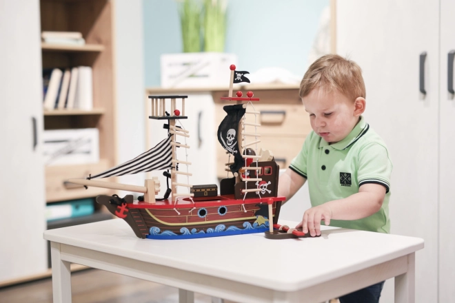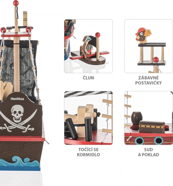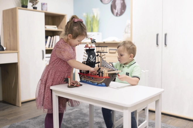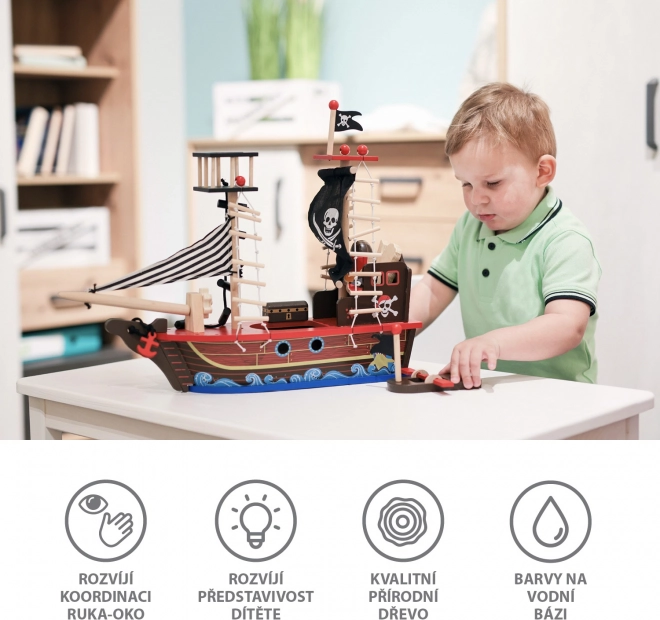 Træ piratskibet styrker finmotorikken og udviklingen af fantasien og giver timevis af inspirerende leg for børn.