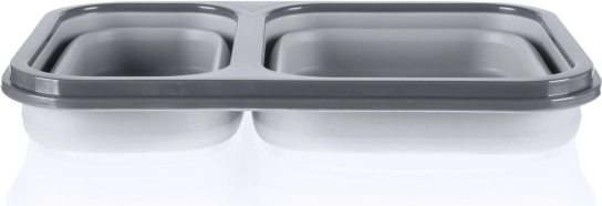 Boksen er opdelt i 2 separate rum, hvilket forhindrer, at de enkelte madvarer blandes sammen.