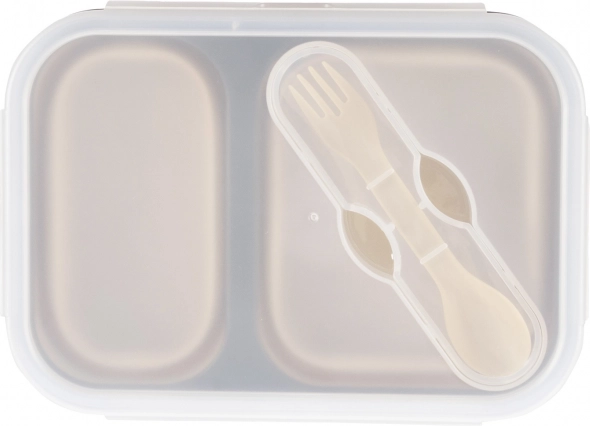Denne snackboks er fremstillet af sikker fødevaregodkendt silikone, som er ikke‑giftig og brudsikker. En stor fordel er, at den let kan foldes sammen, når indholdet er spist – den reducerer dermed sin størrelse med op til 60 % og er derfor en ideel og kompakt ledsager på ture. Låget slutter meget tæt, har et indbygget rum til bestik, og ske med gaffel medfølger i et praktisk etui.