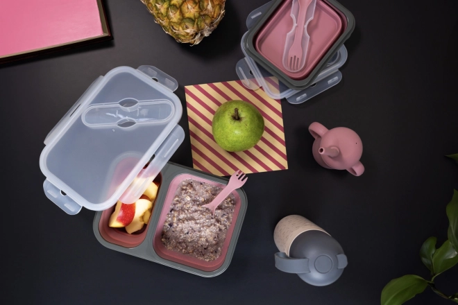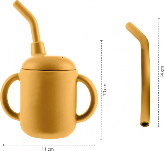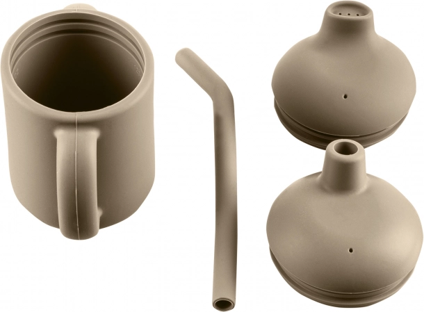 En forfriskende limonade smager bedst fra et krus med sugerør, varm te fra en børneflaske og kakao fra et krus. Silikonekrus 2-i-1 er det ideelle valg i perioden, hvor barnet lærer at drikke selvstændigt, da det har to låg at vælge imellem – et tudelåg, der forhindrer barnet i at spilde, og et klassisk låg med hul til sugerør. Med dette silikonekrus kan din lille nyde sin yndlingsdrik, præcis som han eller hun kan lide den. Håndtagene på begge sider af kruset gør det behageligt og let at holde. Takket være gevindet i låget slutter kruset meget tæt, og derfor er denne løsning velegnet, når I er på farten, så væsken ikke så let spildes.