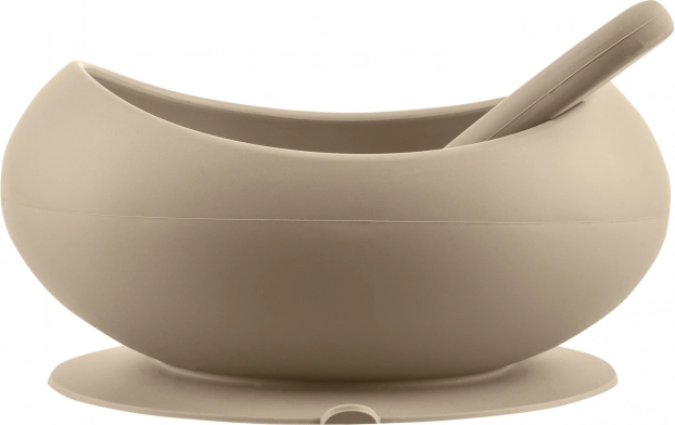 De forhøjede kanter er en stor hjælp, også for et barn der lærer at spise selv. Maden, som barnet får på skeen, glider ikke af takket være de forhøjede og formede kanter. En stor fordel ved silikone er modstandsdygtigheden over for lugte og misfarvning. Hvis mad bliver i skålen så længe, at den er svær at rengøre, er det nok at koge skålen i varmt vand – denne metode kan også bruges til at sterilisere den. Ideel til suppe, pasta, yoghurt, grød, frugt og andre retter, velegnet allerede fra de første smagsprøver.