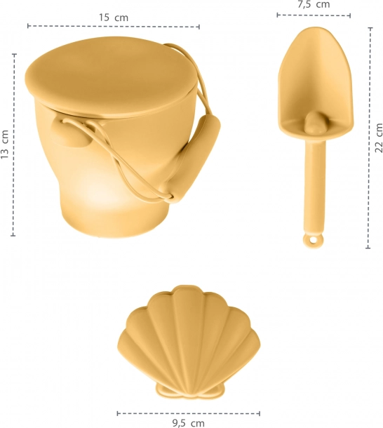 Silikoneformene i et sæt med skovl og spand er sikker underholdning. Fødevaregodkendt silikone er ikke‑giftigt og modstandsdygtigt over for brud. For små børn føles silikone mere naturligt end plast eller metal. Ud over leg i sandet udvikles barnets finmotorik og hånd‑øje‑koordination. Indeholder 8 dele i et smukt, minimalistisk design.
