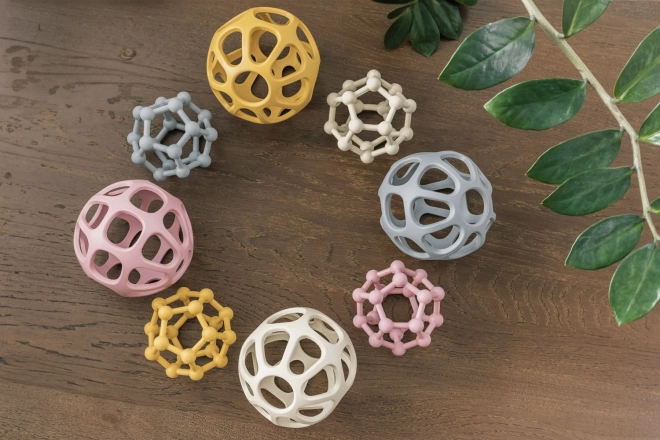 Bideringen er lavet af sikker fødevarekvalitets-silikone, som er ugiftig og brudsikker. For små børn føles silikone mere naturligt end plast eller metal. Takket være formen ligger den godt selv i den mindste hånd, og barnet kan nemt gribe den fra enhver vinkel. Bideringens udformning stimulerer finmotorikken, især hånd-øje-koordinationen. De forskellige strukturer hjælper med at stimulere de ømme og følsomme gummer under tandfrembrud.