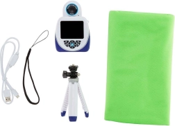Der medfølger et fleksibelt stativ til stabile optagelser, en håndledsrem til sikker bæring og enkle kontrolknapper til hurtig skift mellem tilstande. Ideelt til hjemmeprojekter, familieture og skolepræsentationer.