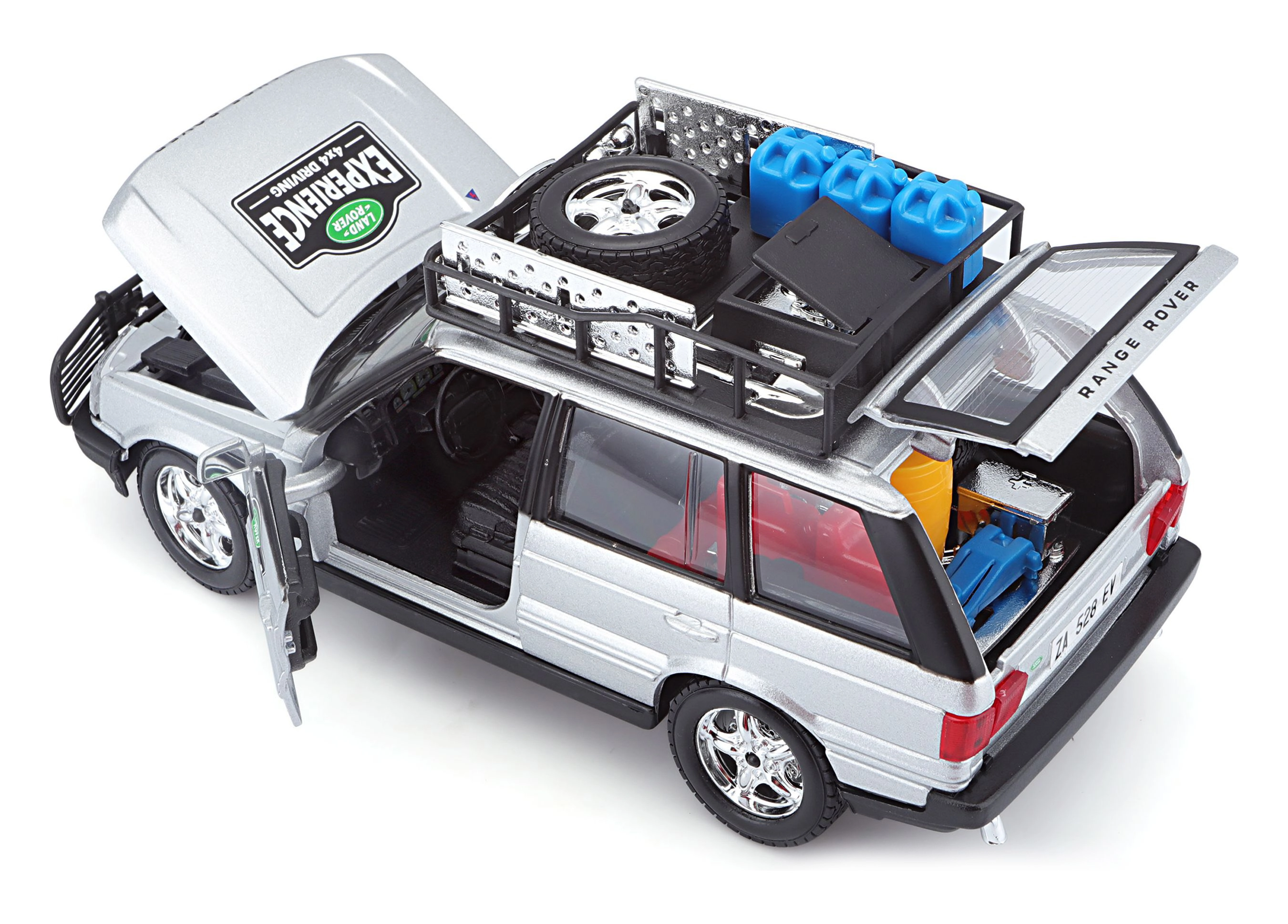 Denne præcist udførte RANGE ROVER-model i skala 1:24 leverer autentiske detaljer, som vil glæde enhver fan af terrængående køretøjer. Den sølvfarvede karrosseri kombineret med tagbærer og tilbehør, frontbeskytter og realistiske decals skaber et attraktivt udtryk til både leg og udstilling.