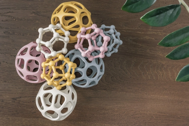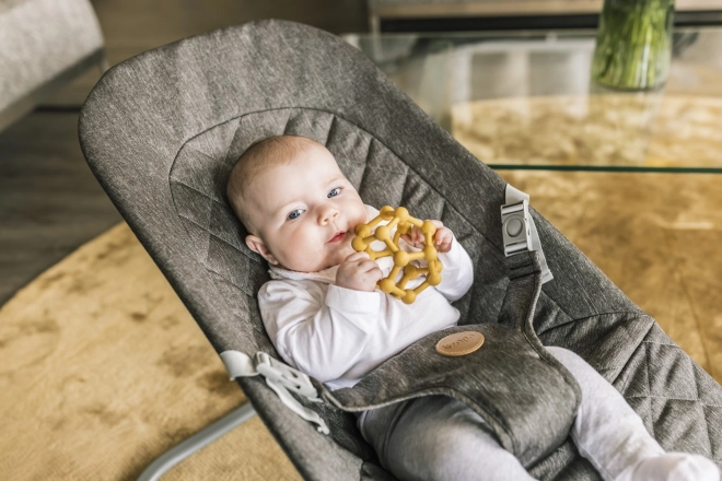 Bideringen er fremstillet af sikker fødevaregodkendt silikone, som er ugiftig og brudsikker. For små børn føles silikone mere naturligt end plast eller metal. Takket være sin form ligger den perfekt selv i den mindste hånd og kan nemt gribes fra enhver vinkel. Bideringens udformning stimulerer håndmotorikken, især hånd-øje-koordinationen. De forskellige strukturer giver behagelig stimulering af ømme og følsomme gummer under tandfrembrud.