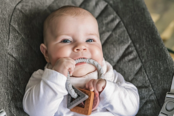 Silikonebideringe med blade til babyer, 2 stk. – Jordbær