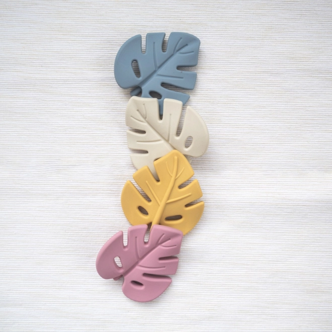 Bideringen er fremstillet af sikker fødevaregodkendt silikone, som er ikke‑giftig og brudsikker. For små børn føles silikone mere naturlig end plast eller metal. Designet i bladform ligger perfekt i selv den mindste hånd. Meget behagelig at tygge på og til at stimulere belastede og følsomme gummer under tandfrembrud. Fremspringene på bladet giver endnu bedre stimulering af gummerne.