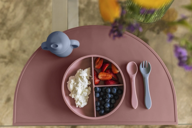 Underlaget er fremstillet af sikkert fødevaregodkendt silikone, som er ugiftigt og brudsikkert. For små børn føles silikone mere naturligt end plastik eller metal. Børn udforsker ofte verden med munden, og når de leger med underlaget og bider i det, er der ingen risiko for, at barnet kommer til skade, da det er lavet af et fleksibelt, blødt og alligevel meget holdbart materiale.
