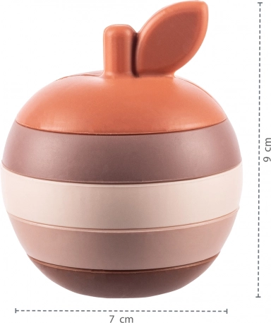 Stablelegetøj i æbledesign er et sjovt legetøj, som underholder barnet i lang tid; ud over underholdning udvikler det barnets finmotorik og hånd-øje-koordination. Indeholder 5 dele, som stables oven på hinanden til formen af et æble. Perfekt underholdning til picnic udenfor, i badekarret eller derhjemme på legetæppet; hjælper barnet med at lære former, farver, rumfornemmelse, tælling samt logiske og motoriske færdigheder. Fungerer også som en bidering, der stimulerer gummerne, når de første tænder bryder frem.