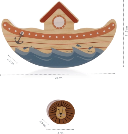 Spil alene eller med flere, børn, voksne, bedstemødre og bedstefædre – dette underholdende spil vil begejstre alle! Læs gradvist alle de små trædyr ombord, men pas på! Jo flere dyr der er på dækket, desto større er risikoen for, at arken vælter, eller at dyrene falder ud af skibet!