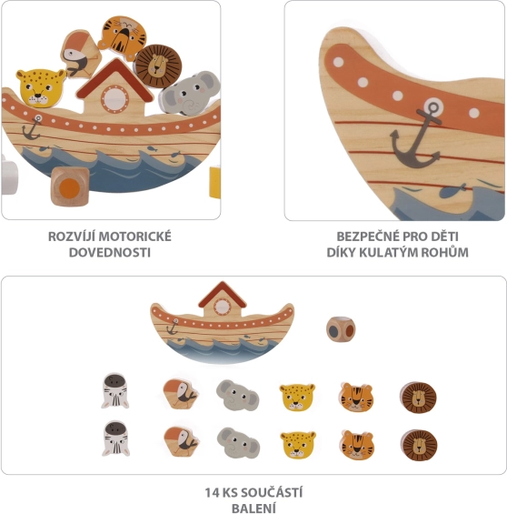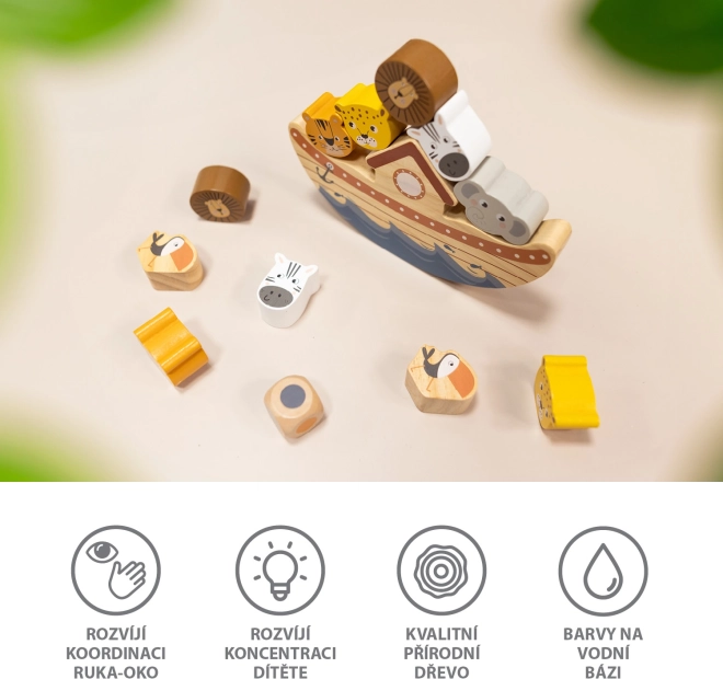 Lad børnene opdage, hvordan tyngdekraften fungerer, og lære rumlig forståelse. På en sjov måde lærer de at stable genstande, så de holder balancen. Spillet er også velegnet til én spiller. Hvis der spiller flere, taber den, hvis dyr først falder af arken.