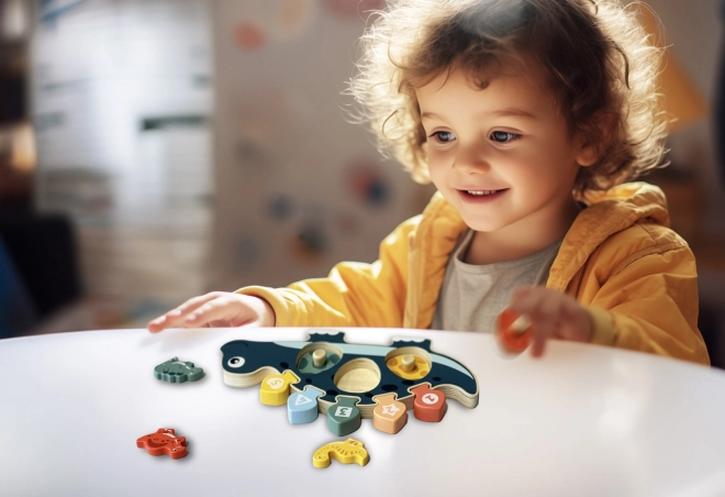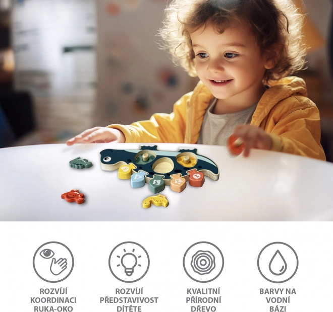 Takket være de holdbare træbrikker er dette puslespil lavet til at holde til uendelige timers sjov, og med brug af ugiftige farver er det helt sikkert for børn. Puslespillet hjælper også med at udvikle finmotorik og hånd-øje-koordination, fantasi, lærer former, farver og at tælle – alt sammen gennem legende og lærerig underholdning.