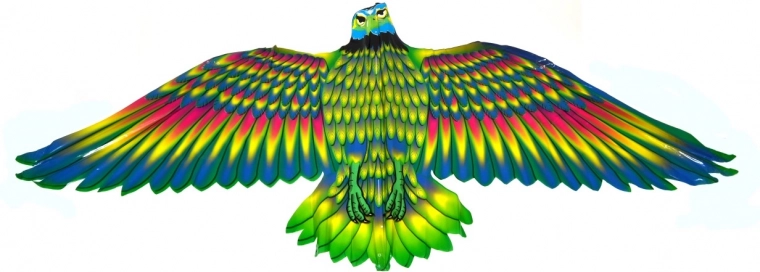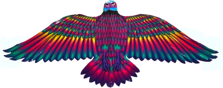 Ørn-formet drage, der skiller sig ud med et markant farvetryk og let sejldug, som fanger vinden fremragende. Størrelsen 132 × 60 cm giver stabilitet selv i let vind og nem styring for både børn og voksne. Et super valg til sjov på engen, ved vandet eller i parken.