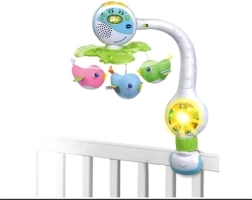 VTech syngende karrusel 3-i-1 er en alsidig hjælper til rolig indsovning og underholdning på farten. De farverige fugle roterer blidt og skaber sammen med musik og lys en beroligende atmosfære. Karrusellen tilbyder tjekkiske og slovakiske melodier og vuggeviser, som hjælper babyen med at falde hurtigere i søvn og føle sig tryg.