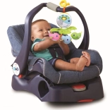 Takket være det praktiske monteringssystem fastgøres den hurtigt til tremmeseng, barnevogn og autostolens håndtag. Funktionen stemmeaktivering starter automatisk ved gråd eller uventet opvågning og beroliger babyen igen. Timeren lader dig indstille varigheden af afspilning og rotation, og lyset kan slukkes når som helst.