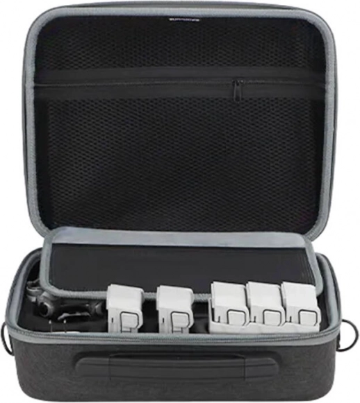 For komfortabel bæring er der solidt håndtag og fæstepunkter til skulderrem. Et ideelt valg til rejser og daglig transport, når du vil have dit DJI Mini 4 Pro-tilbehør sikkert og overskueligt opbevaret.