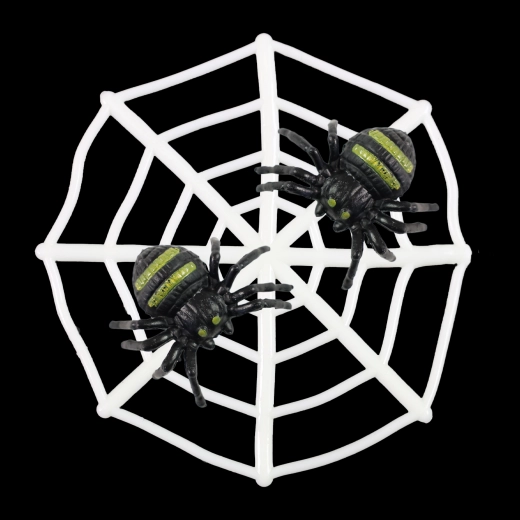 Dette edderkoppespind med edderkopper er en fantastisk dekoration til din Halloweenfest! Det indeholder 2 plastik-edderkopper og et spind, som du kan placere hvor som helst for at skabe en uhyggelig stemning.