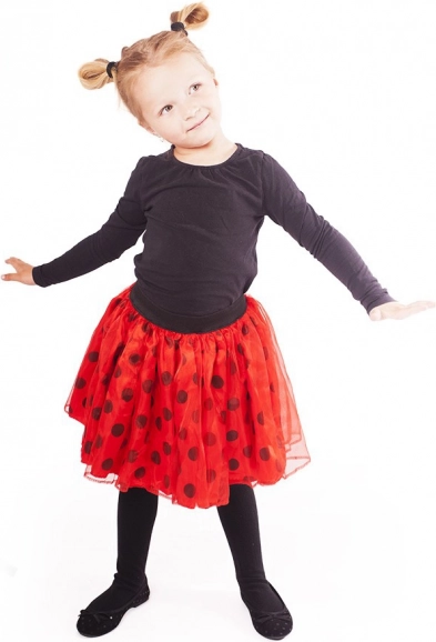 Forvandl din pige til en glad mariehøne på et øjeblik. Den lagdelte, luftige nederdel i blød tyl er behagelig, holder flot facon og er let at tage på takket være den elastiske talje. Den røde farve med sorte prikker imponerer ved første blik og giver ethvert kostume et strejf af magi.
