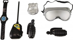 Walkie-talkie, ur, granat, politimærke og briller – alt, hvad den lille politibetjent behøver for at koordinere med “sit hold” og få autentiske eventyr.