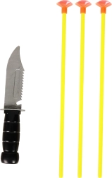 Sættet indeholder også en plastikkniv til rolleleg og et kogger til pilene for overskuelig opbevaring og nem transport.