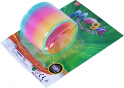Kultlegetøj til både små og store! Denne regnbuemagiske fjeder med en diameter på 7,5 cm og en højde på 6,5 cm strækkes, gynger og går ned ad trapper. Nyd farverige effekter, bevægelse fra hånd til hånd og masser af uendelig sjov både inde og ude.