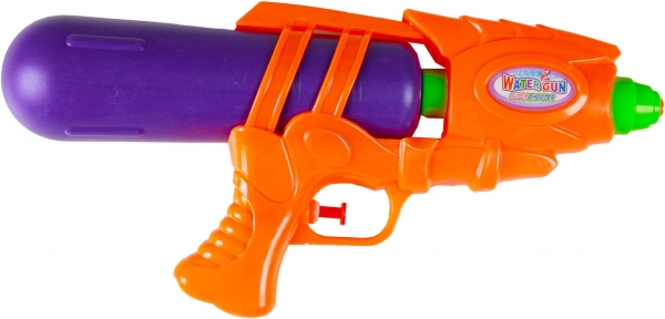 Denne farverige vandpistol på 29 cm er ideel til udendørs lege og vandkampe. Takket være den kompakte størrelse, lette konstruktion og ergonomiske håndtag er den nem at bruge selv for mindre børn. Den integrerede tank gør det hurtigt at fylde vand på og giver lang skudtid.