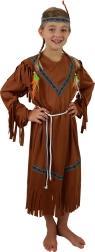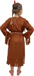 Sødt karnevalskostume til piger i alderen 4–6 år (105–116 cm). Brune kjoler med indianerinspirerede mønstre, frynser og matchende pandebånd med fjer skaber et autentisk look til fastelavn, skolearrangementer og leg. Der medfølger også en snor som bælte. Økse er ikke inkluderet.