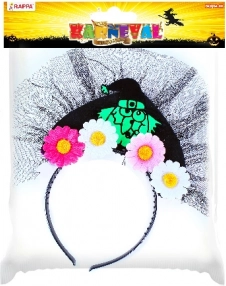 Forbedr din kostume til Halloween eller karneval med denne hekse-hårbøjle, pyntet med farverige blomster – den ideelle tilbehør til enhver fest.
