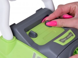 Græsslåmaskinen er lavet af holdbar plast og fås i farver, som børn kan lide, så den er både attraktiv og sikker. Den brede base sikrer stabilitet under legen, og det ergonomiske design gør den let at styre for små børn.