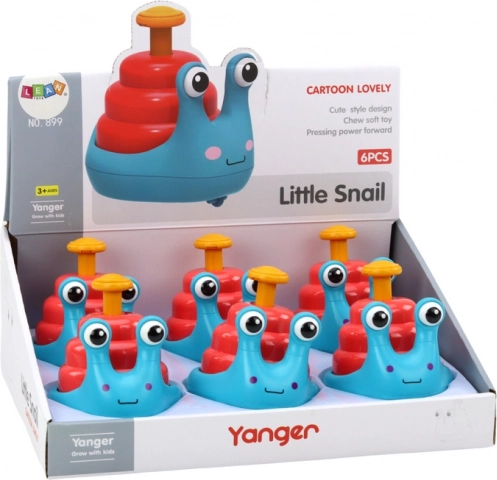 Den kørende snegl på hjul er et usædvanligt legetøj, som glæder med sin interaktive funktion. Når stemplet trykkes ned, bevæger sneglen sig hurtigt hen over underlaget, hvilket giver masser af sjov og opmuntrer barnet til aktivitet.