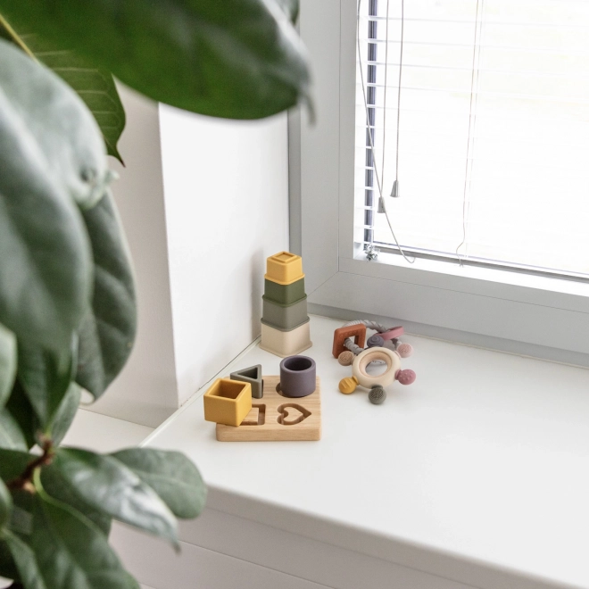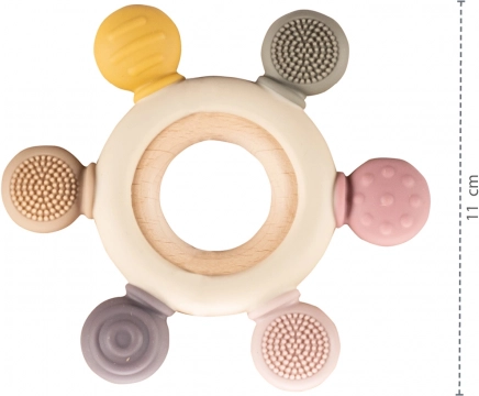 Sikkert og sjovt bidelegetøj til de allermindste. Det siliconesuttesikkert legetøj, ideelt til spædbørn, tilbyder forskellige farverige teksturer, som beroliger dit barns irriterede gummer.
