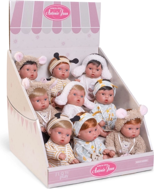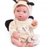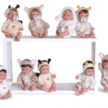 Denne realistiske babydukke med fuld vinylkrop er håndlavet i Spanien og imponerer med sit troværdige babyudseende, inklusive detaljerede træk og hudfolder. Den bløde vinyl er behagelig at røre ved, og forarbejdningen er af høj kvalitet.