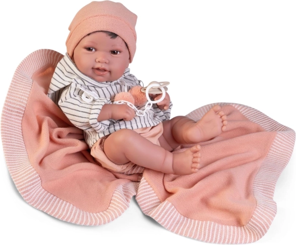 Antonio Juan dukken er en håndlavet realistisk spansk babydukke, som er kendetegnet ved realistisk fremstilling af folder og detaljer, inklusive køn. Specielt blød vinyl sikrer, at den er meget behagelig at røre ved.