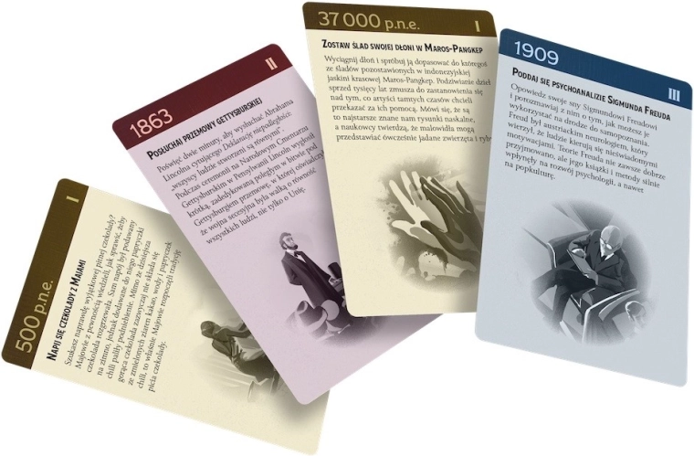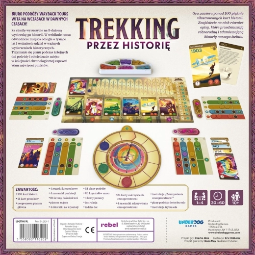 Trekking gennem historien er et strategisk familiespil, der tager deltagerne med på en unik rejse gennem historiens mest betydningsfulde begivenheder. I løbet af spillet vælger vi særlige historiekort og forsøger at holde den rigtige rækkefølge for at få flest mulige point. Takket være de variable opstillinger og individuelle målplader er spillet meget engagerende selv efter flere partier, mens stemningsfulde illustrationer og beskrivelser af historiske begivenheder giver spillet en lærerig karakter.