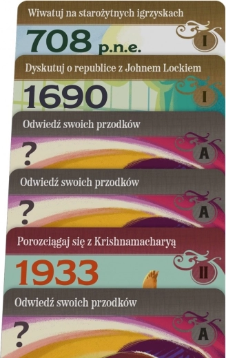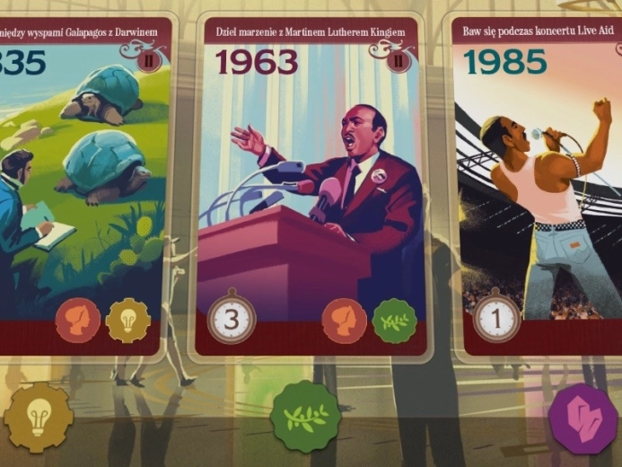 De indsamlede historiekort giver os erfaringsmarkører, som bruges til at opfylde individuelle mål. Hver spiller har sin egen rejseplan, der kræver en særlig kombination af markører. At opfylde disse mål giver værdifulde point. Vi får også point for gennemførte rejser, dvs. sæt af indsamlede historiekort, som danner en ubrudt række af kronologiske begivenheder. Jo flere kort vi formår at samle, desto flere point får vi.