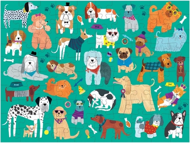 Oplev et sjovt og lærerigt dobbeltsidet puslespil med motiver af hunde og katte med 100 brikker, der styrker koncentration og visuel hukommelse. Fremstillet af genanvendte materialer og trykt med ikke‑giftige farver, leveret i en solid æske til sikker opbevaring.