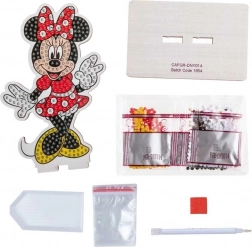 Giv den elskede MINNIE MOUSE en unik glans! Takket være tydeligt markerede felter og en applikationspen placerer du nemt hver sten det rigtige sted. Resultatet er en strålende dekoration på en træplade, som du kan udstille på den medfølgende stander.