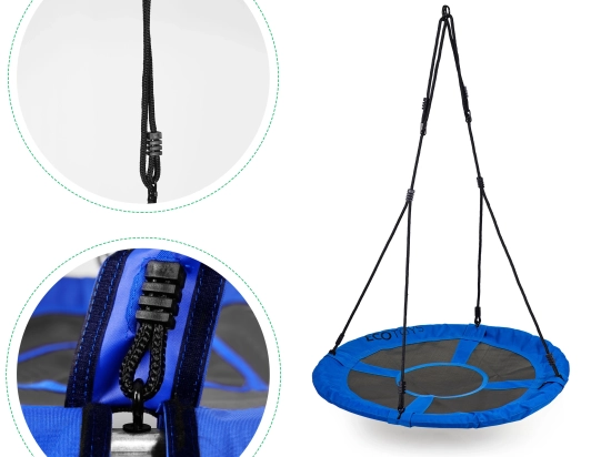 - Sikkerhedsfunktioner: Sædet er beskyttet med blødt skum, og rebene har sikre metalringe.