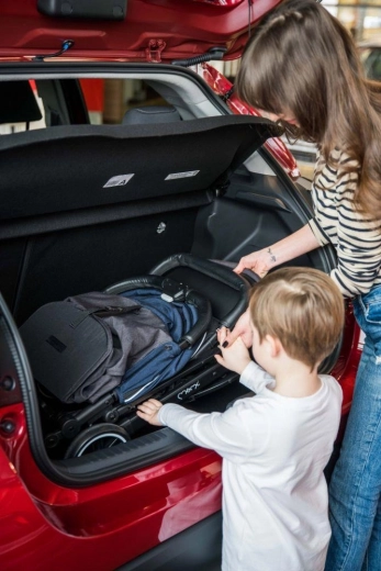 MoMi ESTELLE sørger for, at gåturen også er behagelig for mor. De kvikke, affjedrede og punkteringsbestandige hjul gør manøvreringen komfortabel. Den store kurv gør indkøb lettere, fordi du ikke behøver at bære tunge ting i hænderne, og alt, hvad du køber, får plads under klapvognen. Klapvognen MoMi ESTELLE vil også overraske dig med sine praktiske egenskaber i sammenfoldet tilstand, for den er lille, kompakt, kan opbevares vertikalt og har et håndtag til at skubbe den sammenfoldede klapvogn.
