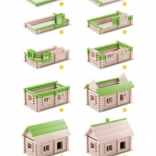 Oplev glæden ved at bygge bjælkehytter med et naturligt træbyggesæt, der udvikler kreativitet, fantasi og finmotorik. Glatte bøgerundstokke med en diameter på 15 mm låser sikkert sammen via præcise samlinger og giver stabilitet i den færdige konstruktion. Modellerne kan samles og skilles ad igen og igen, så I kan vende tilbage til favoritprojekterne.