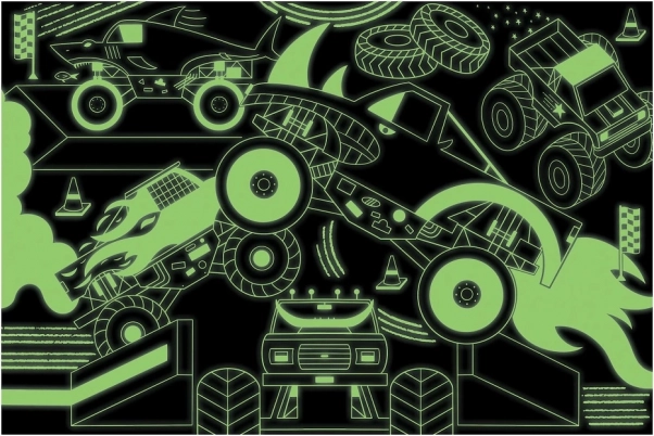 Saml en dynamisk og spændende scene med Monster Trucks puslespillet, der lyser, når lyset er slukket! Dette puslespil indeholder 100 præcist skårede brikker og er lavet af genbrugsmateriale opnået bæredygtigt. En speciel mat overflade sikrer troværdig gengivelse af alle detaljer og farver.