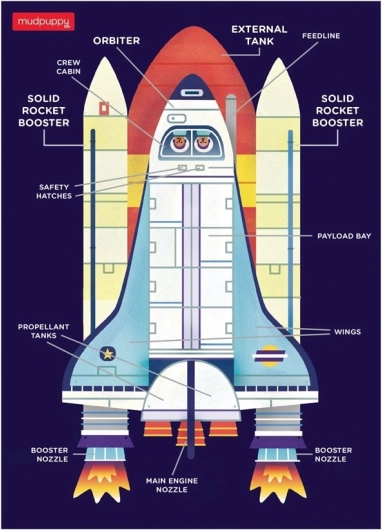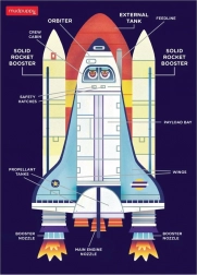 På bagsiden af billedet findes en skematisk beskrivelse af rumfærgen, som giver børn ekstra læringsværdi.